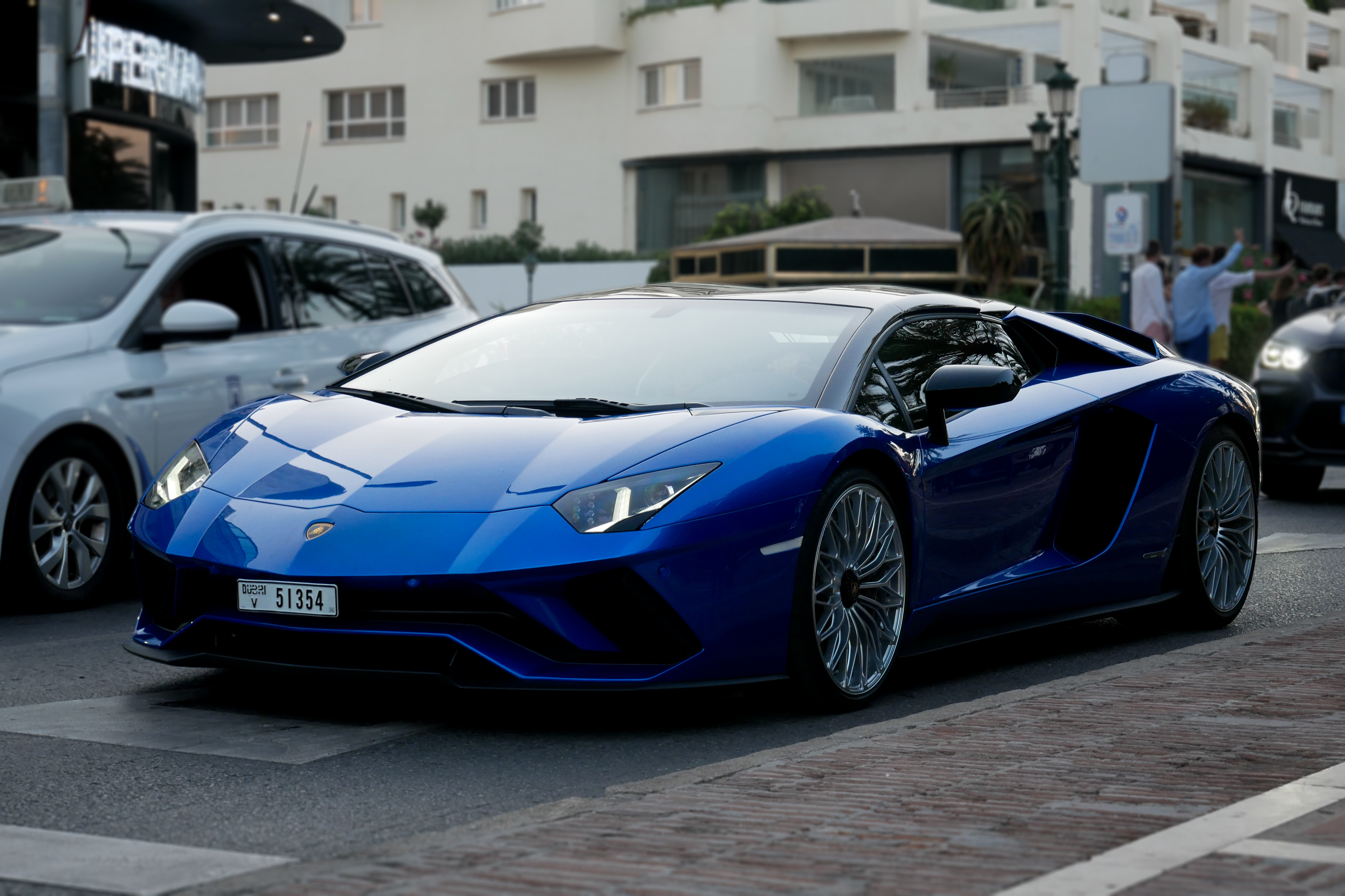 - Blue Lamborghini supercar on street