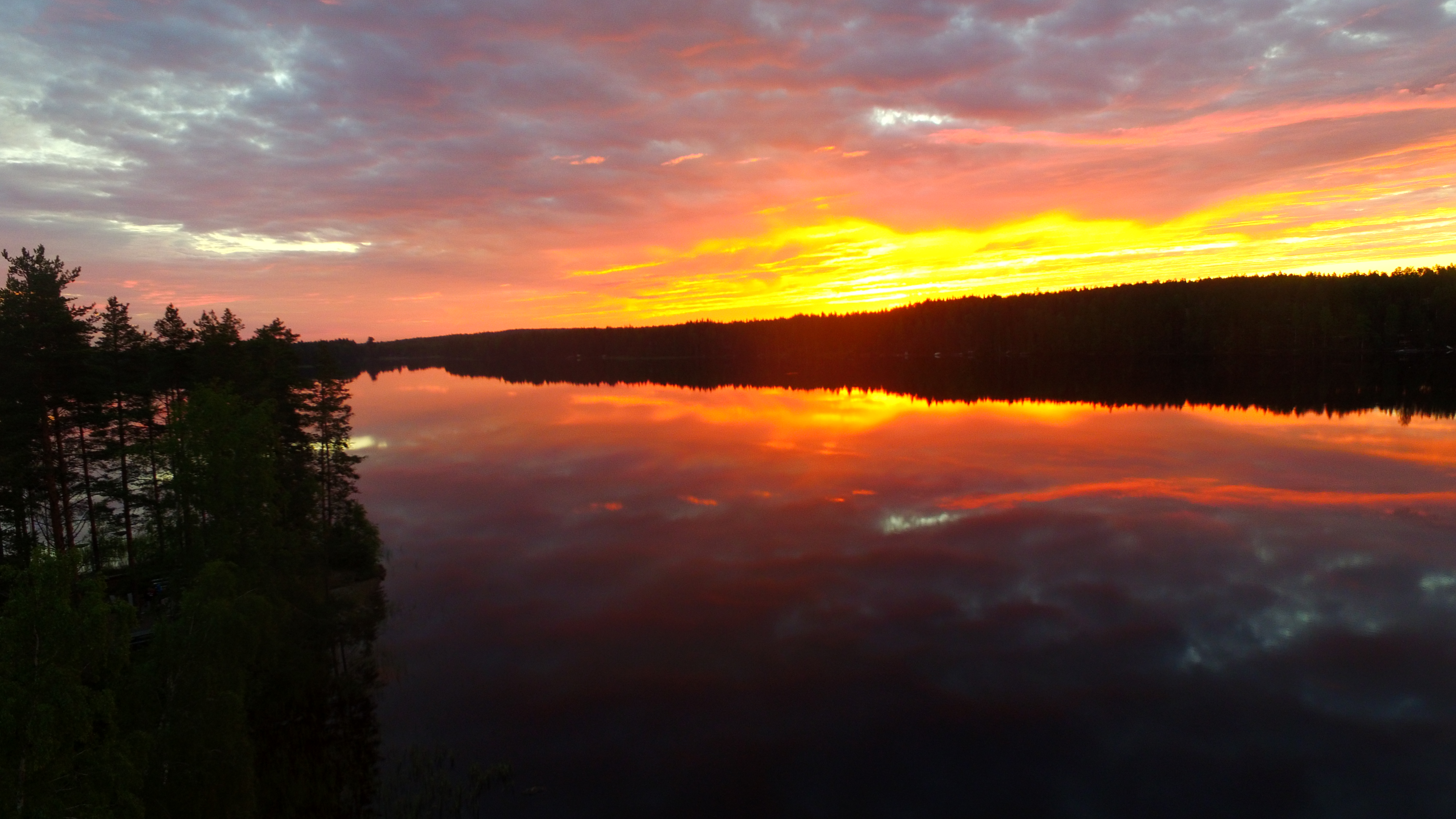 - Vibrant sunset reflecting on calm water