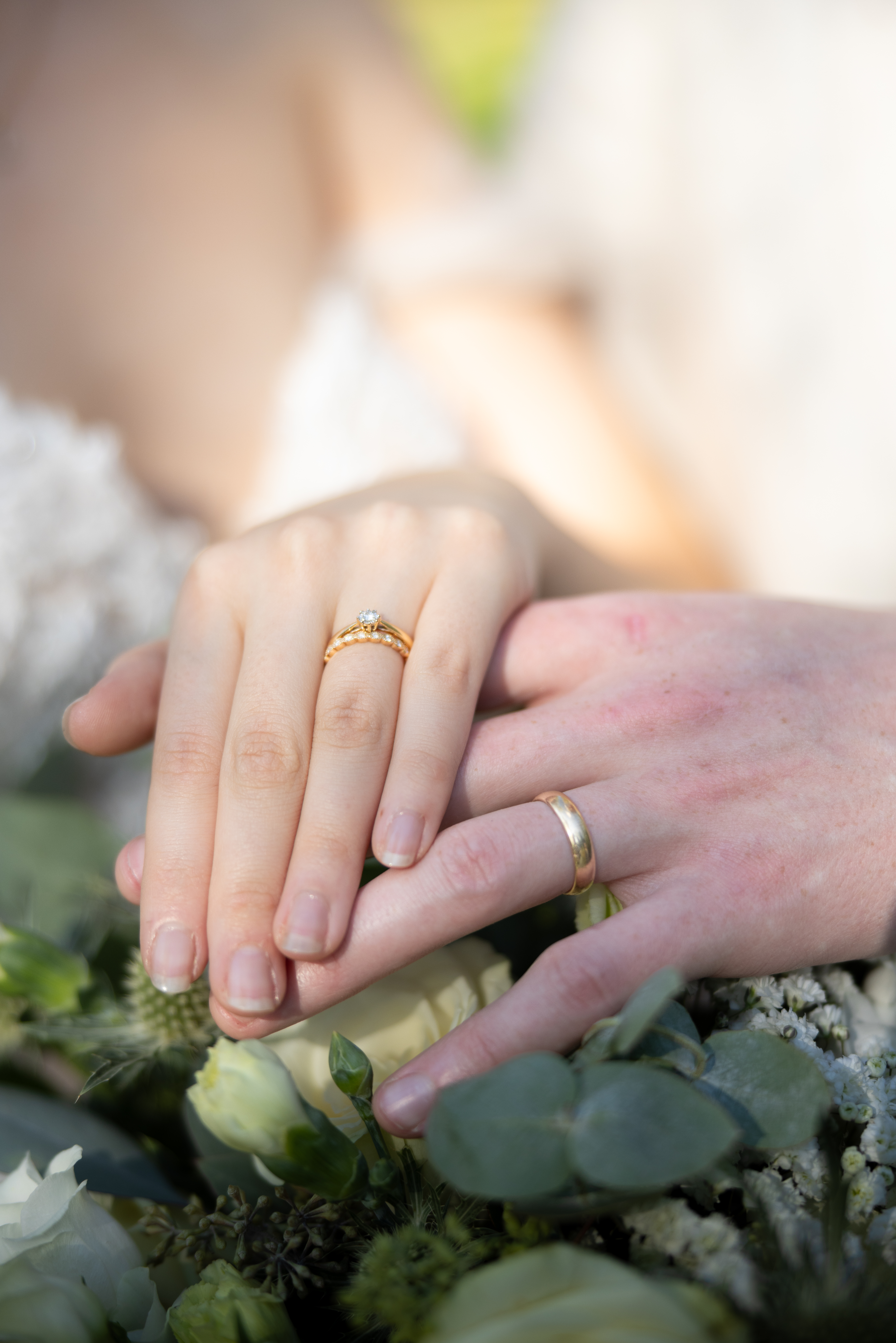 - Wedding rings on intertwined hands