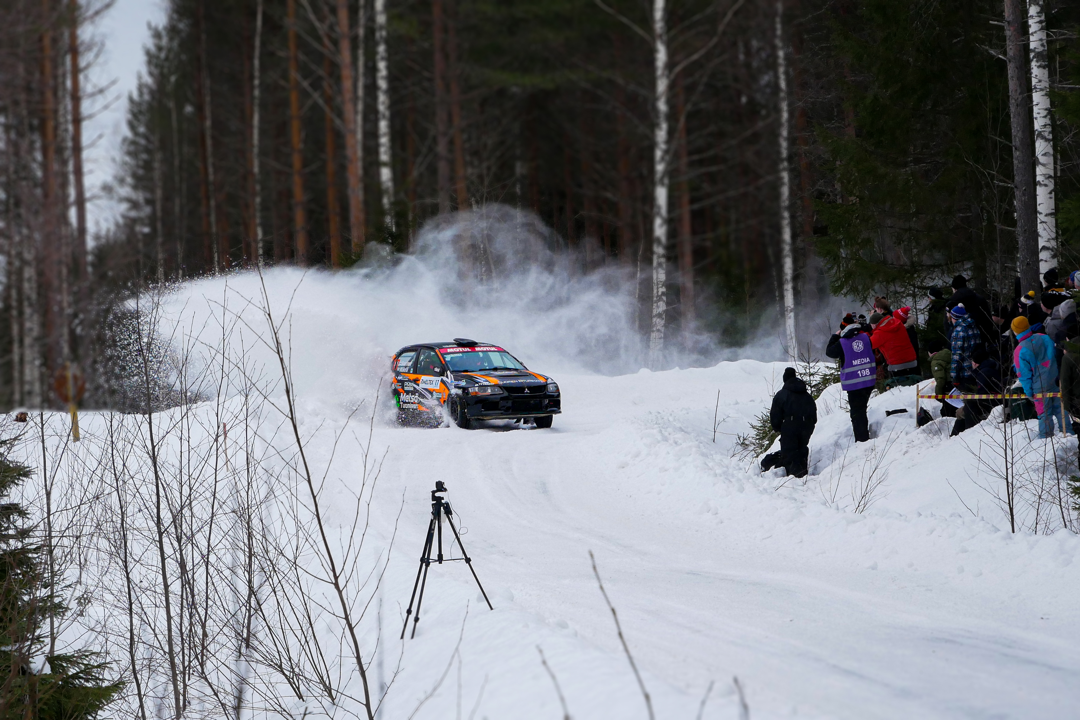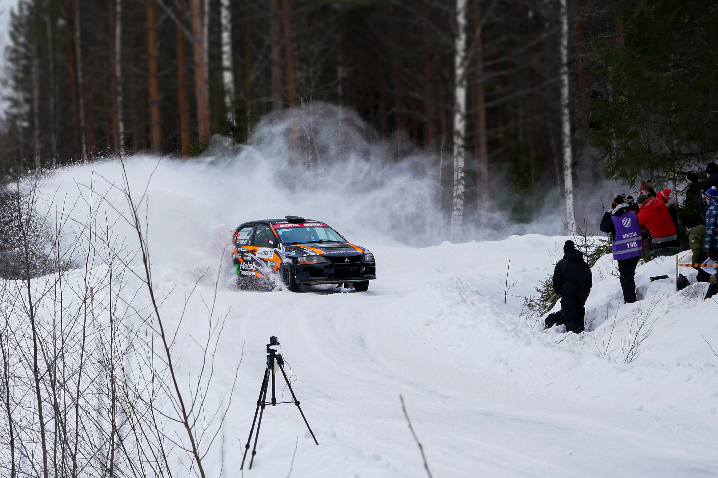 - Rally car photography on snowy forest track