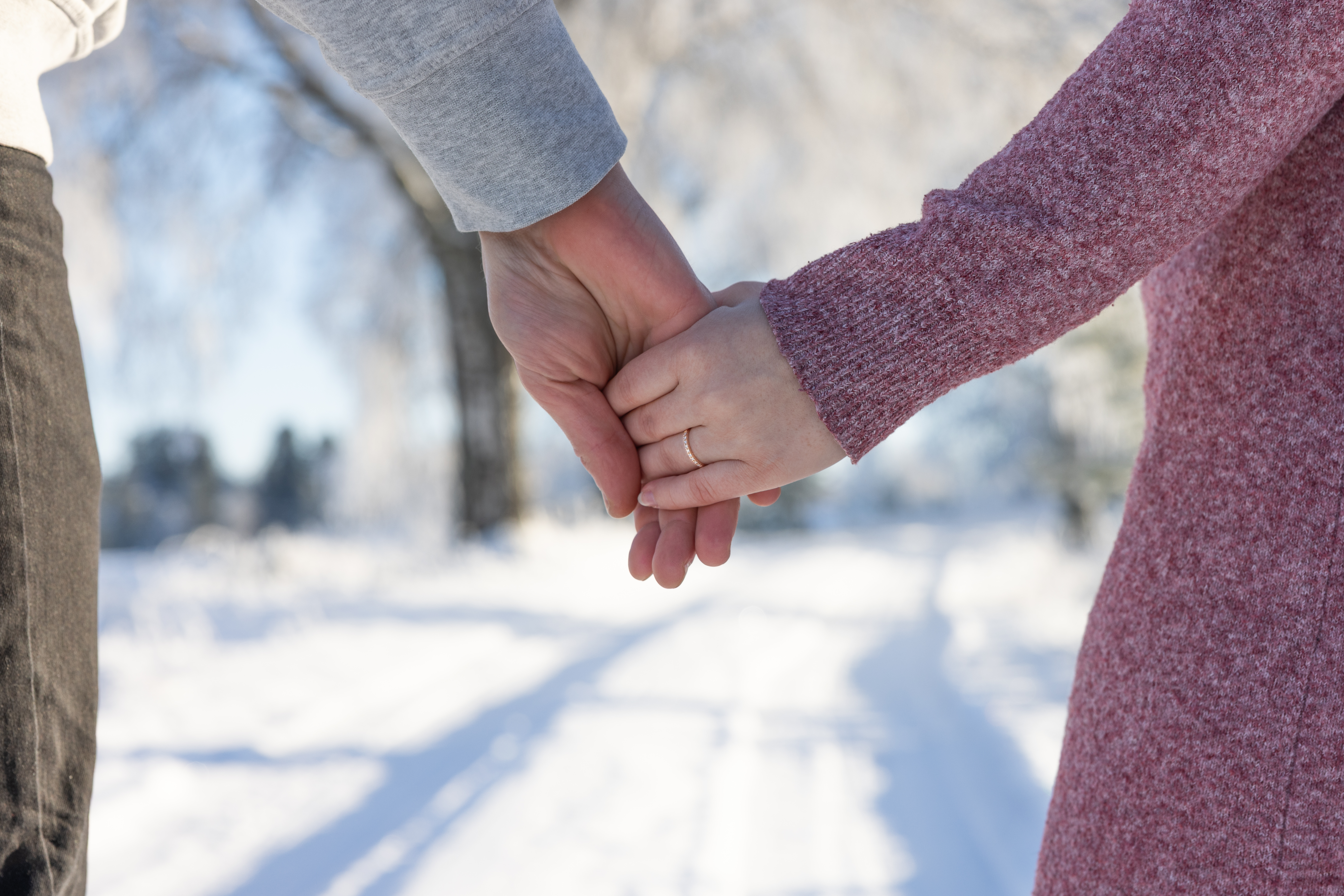 - Couple holding hands in snow