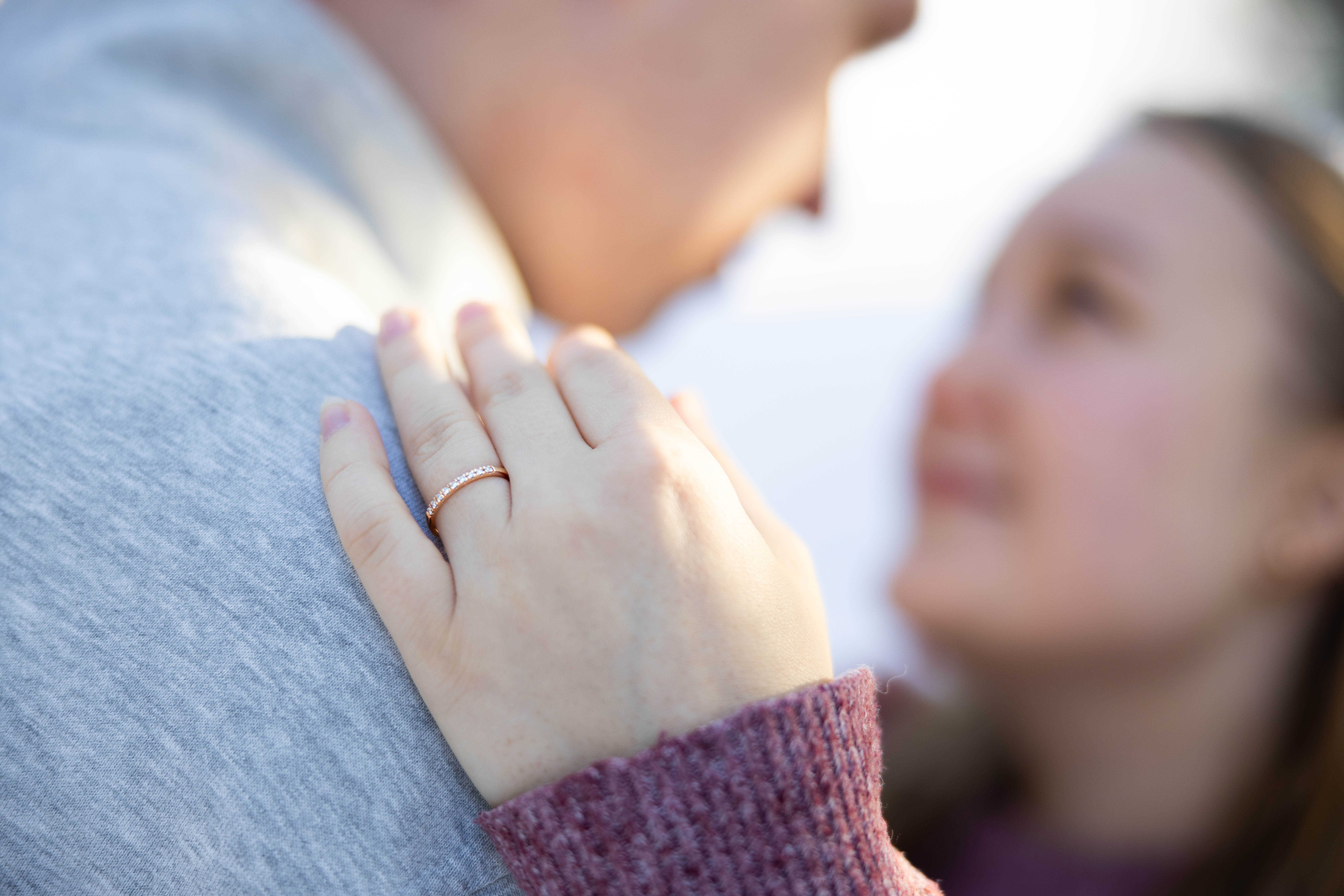 - Hand with ring on a person's shoulder