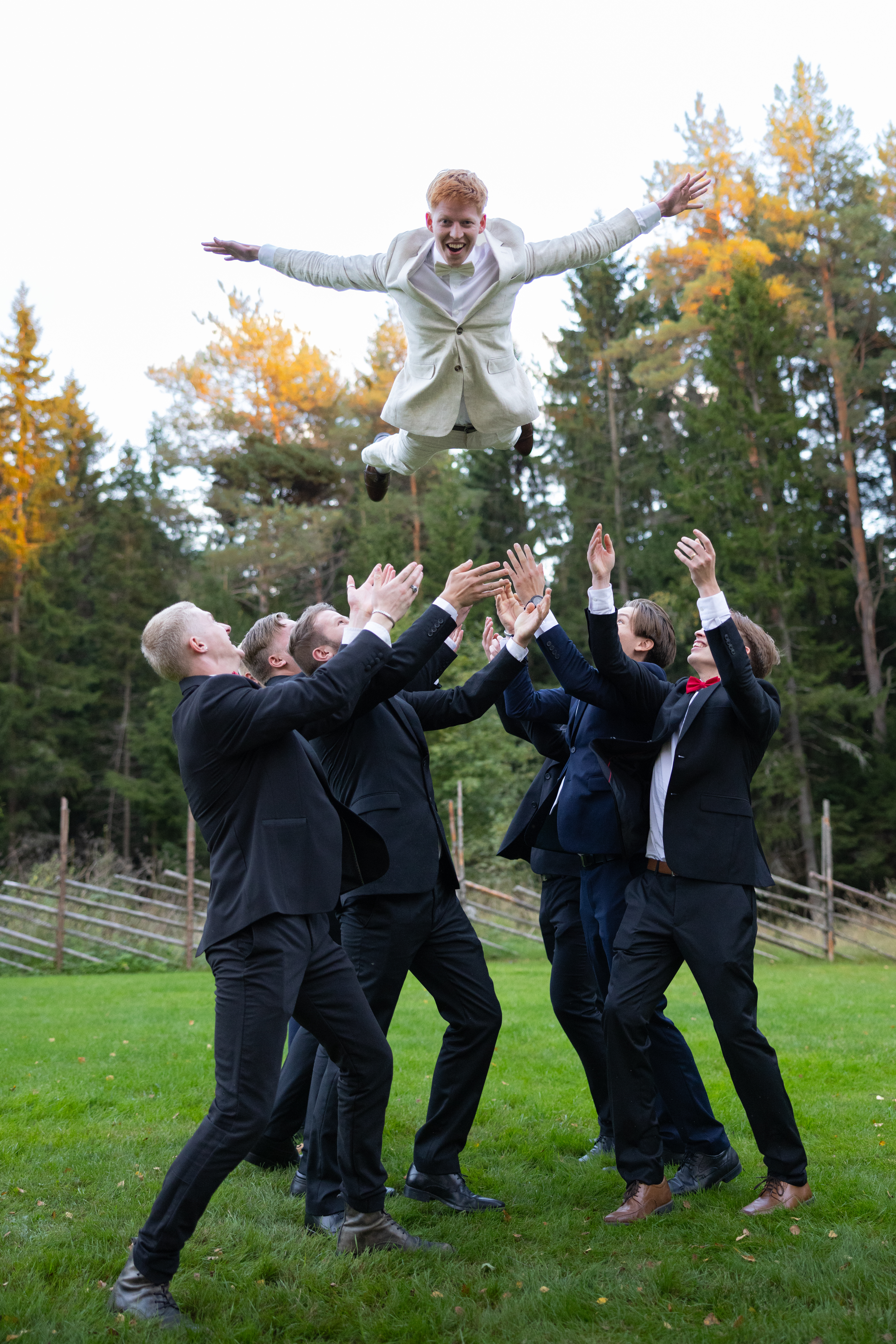 - Wedding photography: groomsmen toss groom