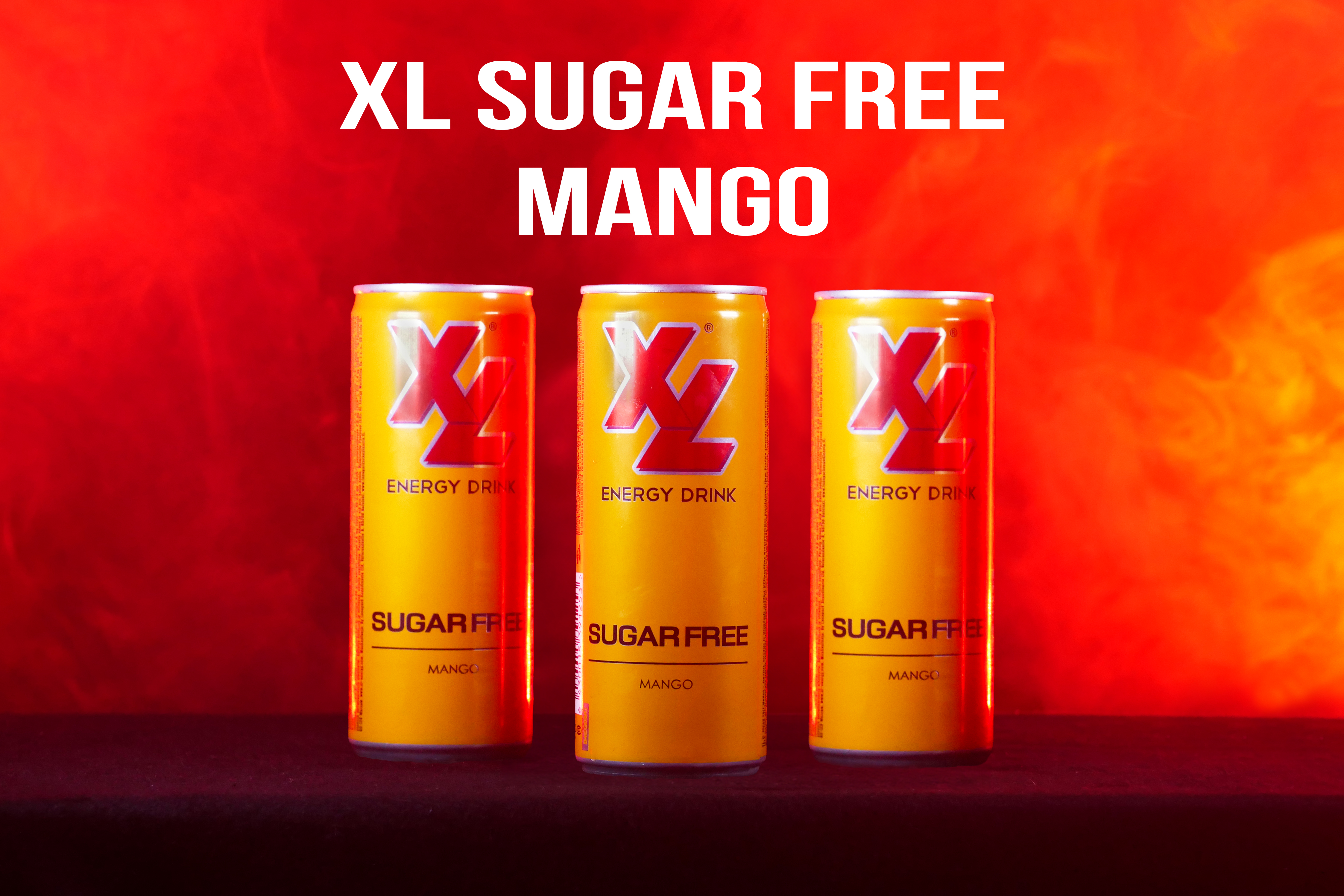 - Three XL Sugar Free Mango energy drink cans